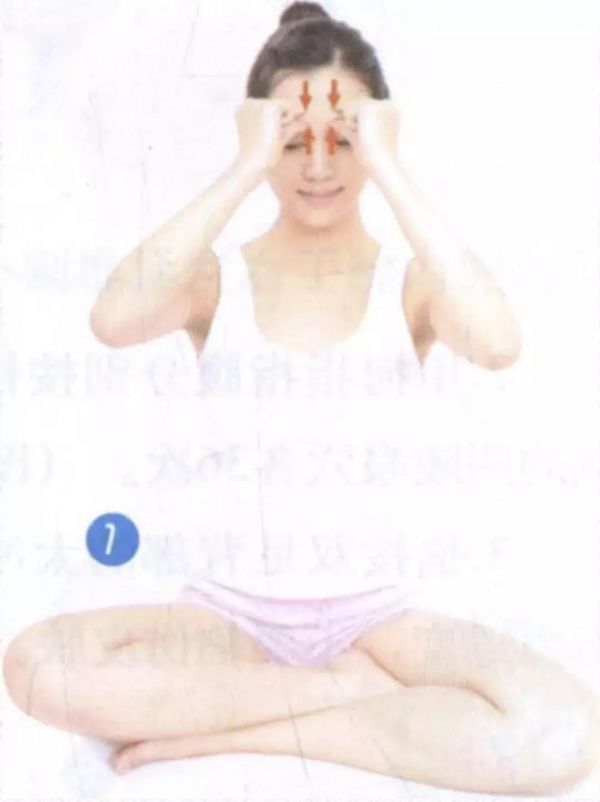 1.用拇指指甲和食指指甲掐壓兩眉毛內(nèi)側(cè)的攢竹穴36次,指力要平穩(wěn)有節(jié)奏。