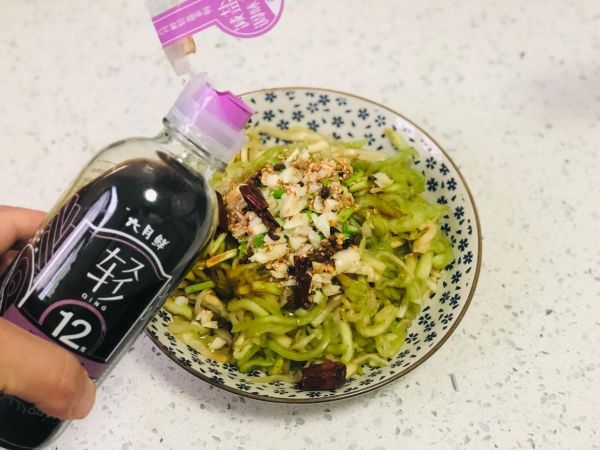 7、最后,我們來進(jìn)行調(diào)味,調(diào)味料宜少不宜多,這樣才能保留茄子的原汁原味,我們只需要加入適量的輕鹽醬油就可以了,健康又美味,非常適合夏季食用!