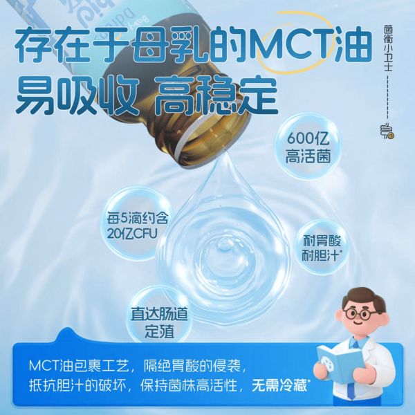 高活性益生菌:獨(dú)特的雙菌組合,專為改善嬰幼兒腸道健康而設(shè)計(jì)。通過(guò)促進(jìn)腸道內(nèi)有益菌的生長(zhǎng),增強(qiáng)寶寶的消化能力,有助于維持良好的腸道平衡,保障成長(zhǎng)時(shí)期的健康。讓每一個(gè)小生命在呵護(hù)中茁壯成長(zhǎng)。 適合0到1歲嬰幼兒:特別針對(duì)這一年齡段的嬌嫩腸道,提供溫和而有效的支持。這款產(chǎn)品不僅能幫助解決寶寶常見的消化問題,還能有效提升他們的免疫力,確保他們的成長(zhǎng)更順利,更健康。 方便的液體形式:以滴劑形態(tài)呈現(xiàn),取用更加簡(jiǎn)便,無(wú)需擔(dān)心吞咽上的困難。能夠輕松加入到奶水或輔食中,讓身體吸收變得毫不費(fèi)力,減輕了家長(zhǎng)們的喂養(yǎng)壓力,陪伴寶寶快樂成長(zhǎng)。 精致7.5ml量裝:每瓶7.5ml的設(shè)計(jì),滿足為期21天的連續(xù)使用,無(wú)需頻繁更換。完美的容量不僅便于攜帶,使得外出旅行時(shí)也無(wú)需擔(dān)心,隨時(shí)隨地都能給寶寶提供所需的營(yíng)養(yǎng)支持,讓每一次出行都安心。 支持健康消化:通過(guò)科學(xué)配比,幫助增強(qiáng)嬰幼兒的消化能力與營(yíng)養(yǎng)吸收,助力他們的全面發(fā)展。家長(zhǎng)們可以放心使用,從小呵護(hù)寶寶的腸道,建立健康的基礎(chǔ),讓寶寶的成長(zhǎng)路途更加光明。