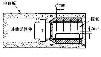 變壓器T需自行繞制,選用N27型E字形鐵氧體磁心,線圈繞在其絕緣框架上,初級用直徑0.4mm漆包線繞11圈,次級用直徑0.1mm漆包線繞3300圈,初、次級間應(yīng)墊有絕緣層,線圈繞好后需用絕緣帶包裹。