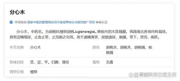 中藥就像一位沉默的老朋友,總在最需要時(shí)給你最踏實(shí)的擁抱。我是腎病科鄧立武醫(yī)生,在腎病科深耕30多年,每天看著患者為蛋白尿、肌酐升高發(fā)愁,總想用最接地氣的方式告訴大家:老祖宗留下的寶貝里,藏著治腎病的金鑰匙。今天要說(shuō)的分心木,就是核桃殼里那層薄如蟬翼的木質(zhì)隔膜,老百姓叫它核桃隔、胡桃衣,《本草再新》記載它"味苦澀、性平,歸脾腎經(jīng)",多生長(zhǎng)在北方山區(qū),清代醫(yī)家黃宮繡夸它"能固精氣,治遺溺"。