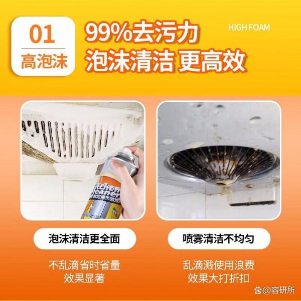 廚房清潔從此變得輕松自如,專為重油污設(shè)計(jì)的清洗劑能夠迅速滲透頑固污垢,輕松解決油煙機(jī)等表面的強(qiáng)烈油漬。創(chuàng)新的多功能泡沫清潔形式,讓其不僅限于油煙機(jī),還可以方便地用在灶臺(tái)、炒鍋等不同類型的表面,為您的廚房保駕護(hù)航。