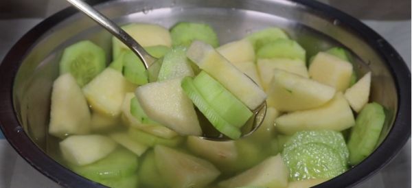 1、黃瓜皮和蘋果皮都要清洗干凈再煮水食用。