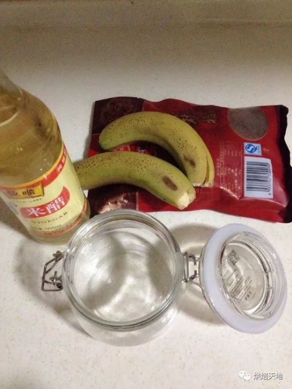 1. 先來看一下我們需要準備的食材及工具。香蕉、米醋、紅糖、密封玻璃罐。