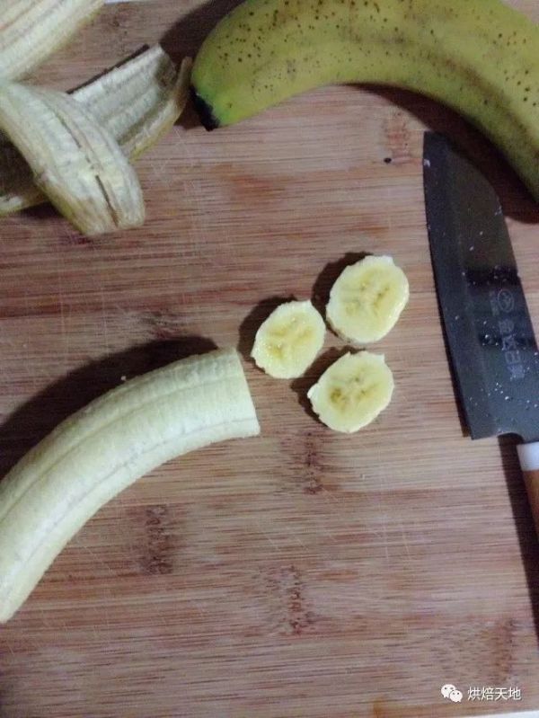 2. 把香蕉去皮,切成1-2厘米的薄片。