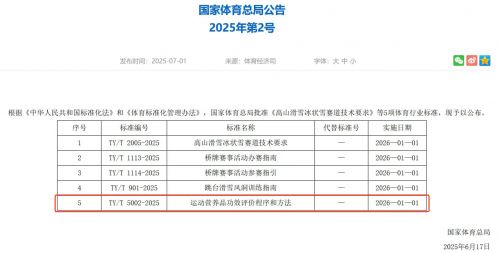 近日,國家體育總局發(fā)布2025年第2號公告,體育行業(yè)標準新規(guī)《運動營養(yǎng)品功效評價程序和方法》(TY/T 5002-2025)重磅發(fā)布。此次行業(yè)新規(guī)由國家體育總局運動醫(yī)學(xué)研究所負責(zé),由運動營養(yǎng)行業(yè)代表性企業(yè)北京康比特體育科技股份有限公司(以下簡稱“康比特”)及北京大學(xué)第三醫(yī)院、揚州大學(xué)、北京體育大學(xué)共同聯(lián)合修訂。該標準將于2026年1月1日正式實施。