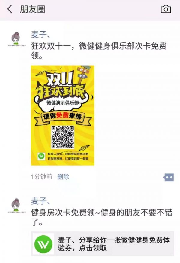 這種次卡是可以以鏈接或者海報的方式分享到朋友圈。(微健為健身房定制專屬分享海報)