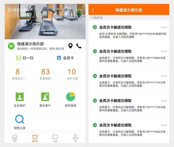 另外還有福利,在小程序里就算潛客領取了次卡,但是沒有到店,領取者的手機號碼也會進入健身的潛客列表中,我們能夠在微健app上查看,然后進行電話邀約!??!