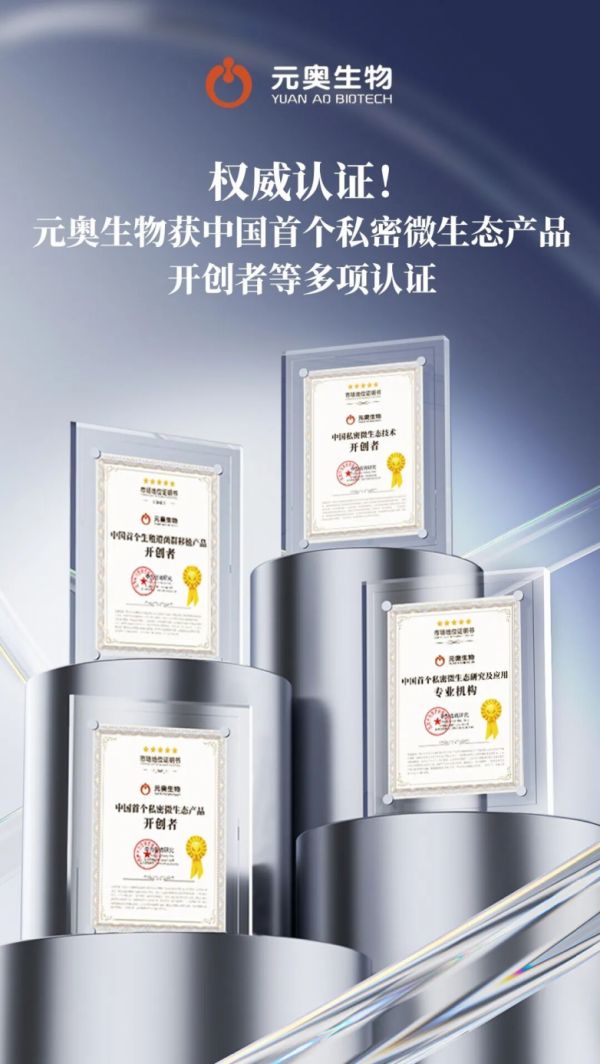 作為中國私密微生態(tài)技術(shù)的開創(chuàng)者,元奧生物目前已獲得“中國首個私密微生態(tài)產(chǎn)品開創(chuàng)者”“中國首個私密微生態(tài)研究及應(yīng)用專業(yè)機構(gòu)”“中國首個生殖道菌群移植產(chǎn)品開創(chuàng)者”四大市場地位認證,奠定了其在私密微生態(tài)領(lǐng)域的領(lǐng)軍地位。