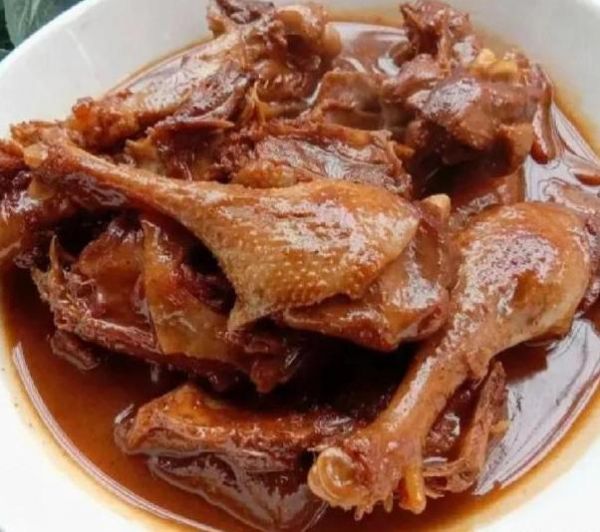 -制作步驟:首先將鴨子清洗干凈,剁成塊狀,并切好姜片備用。接下來(lái),在鍋中加熱油,放入鴨子塊、八角姜片,將鴨子炒干水分,炒出油,使其表皮微黃。然后倒入一勺料酒,加入適量的生抽老抽和蠔油,翻炒均勻。隨后加入適量的開(kāi)水,放入少許鹽和胡椒粉,蓋上鍋蓋用中小火燉煮半小時(shí)。最后,使用大火收汁即可。
