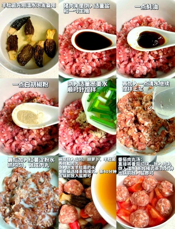 接下來(lái),我們制作另一道美味——羊肚菌山藥肉丸湯。這道湯品結(jié)合了羊肚菌的鮮美與山藥的滋補(bǔ),肉丸的嫩滑口感定會(huì)讓你回味無(wú)窮。
