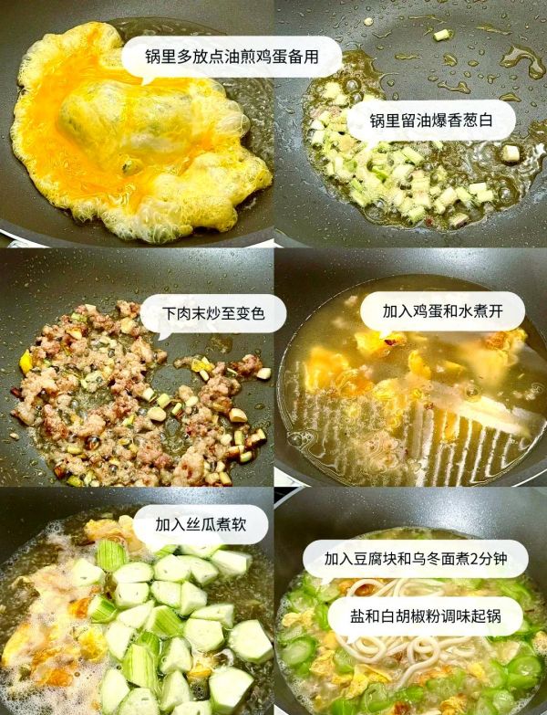 最后,根據(jù)個(gè)人口味加入適量的鹽和白胡椒進(jìn)行調(diào)味,撒上蔥花增香,即可出鍋享用。這樣,一道美味的肉末絲瓜烏冬面就做好了。