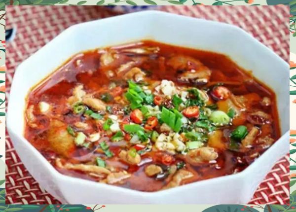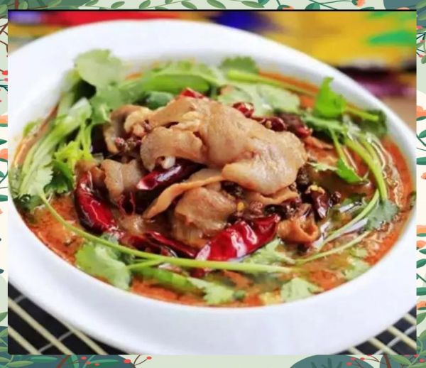 將里脊肉切片后用料酒、胡椒粉、雞蛋清和淀粉腌制。 焯水后,與配菜一起煮入味,最后激香調(diào)料。
