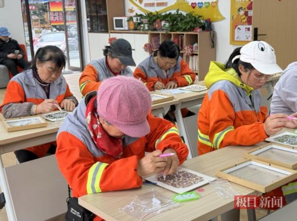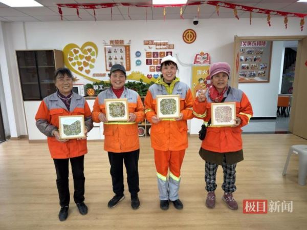活動尾聲,環(huán)衛(wèi)工人張阿姨手捧她的作品,臉上露出燦爛的笑容?!扒鍜呗淙~和粘貼珍珠都需要耐心和細心,但今天的耐心是為自己服務,感覺不一樣!”許阿姨說,“第一次做這樣的手工,剛開始控制不好,后面慢慢就越弄越好,感覺心情也平靜了。”