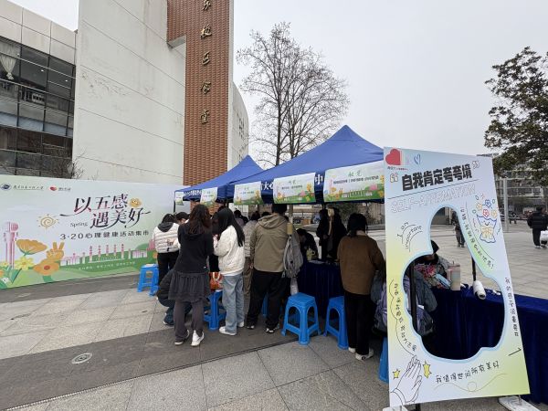 為進(jìn)一步普及心理健康知識(shí),提升學(xué)生心理健康素養(yǎng),3月20日“咱愛(ài)您”心理健康日當(dāng)天,學(xué)生工作處心理中心在東苑食堂門口開(kāi)展了一場(chǎng)以“用感官觸碰內(nèi)心”為主題的五感療愈集市活動(dòng)?;顒?dòng)通過(guò)視覺(jué)、聽(tīng)覺(jué)、嗅覺(jué)、味覺(jué)、觸覺(jué)五大沉浸式體驗(yàn)板塊,為參與學(xué)生搭建了一個(gè)放松身心、疏導(dǎo)情緒的平臺(tái),讓大家在趣味互動(dòng)中感受心靈治愈的力量。