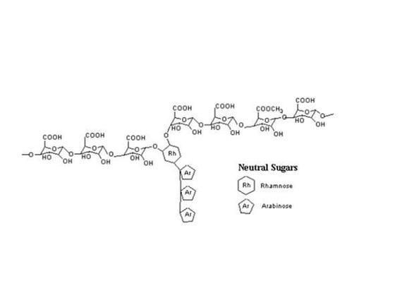 果膠天然存在于水果的細(xì)胞間及細(xì)胞壁內(nèi),尤其多聚集于果皮與果肉之間。果膠存在于水果細(xì)胞中的間質(zhì)與細(xì)胞壁內(nèi),是重要的機(jī)械連接成分。果膠兼具彈性和機(jī)械連接功能,它能夠有效地將細(xì)胞壁的其他成分連接成一個(gè)整體,發(fā)揮著粘連植物細(xì)胞的關(guān)鍵作用。在植物體內(nèi),果膠對(duì)控制水分和植物液體的流動(dòng)起著至關(guān)重要的作用。