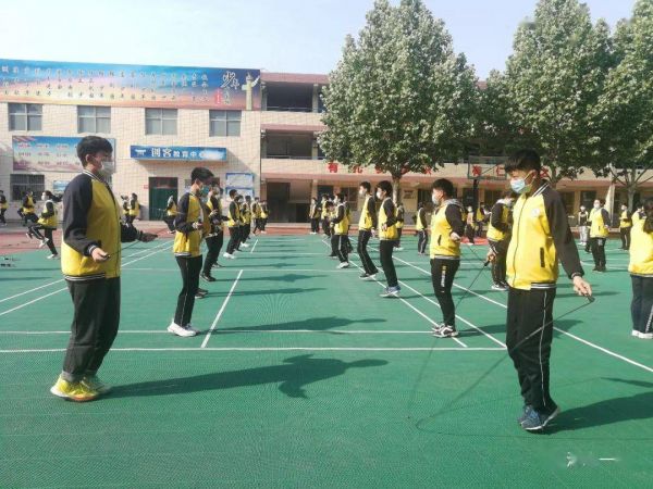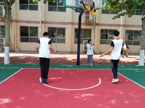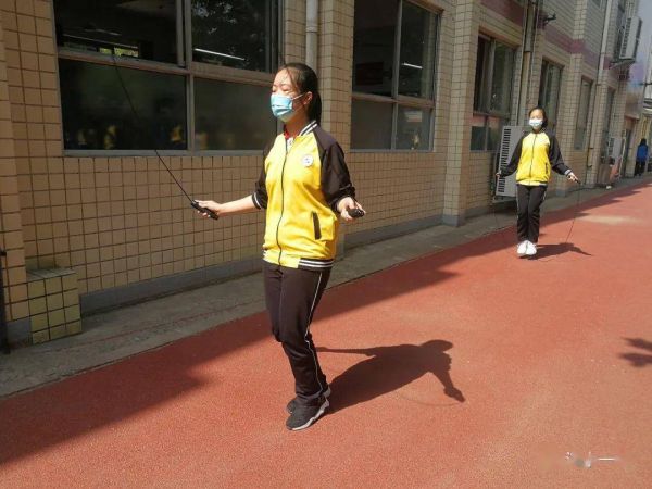 “跳繩是一項安全系數(shù)高、參與度高、所需條件少,且能獨立完成的極佳運動,既能保證合理安全的間距,又能在有限的空間內(nèi)最大限度地使全身都得到很好的鍛煉,讓初三學子充分減壓,在學習備考之余得到充分釋放?!斌w育教師如是說。