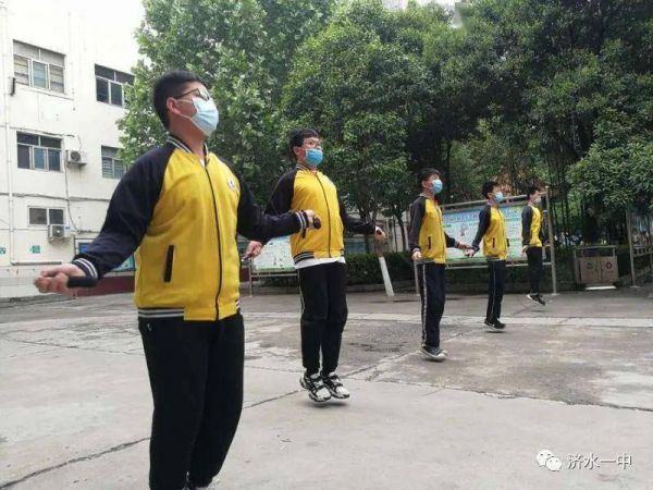 5月15日,濟水一中大課間生機勃勃。教室內(nèi),七八年級學子伴隨著歡快動感的音樂,享受著室內(nèi)廣播操帶來的健康樂趣。教室外,運動場“繩”采飛揚,九年級的孩子們在學校的合理安排,班主任和體育老師的精心組織下,按照疫情防控要求,因地制宜開展了大課間小組“一分鐘跳繩”體育活動。