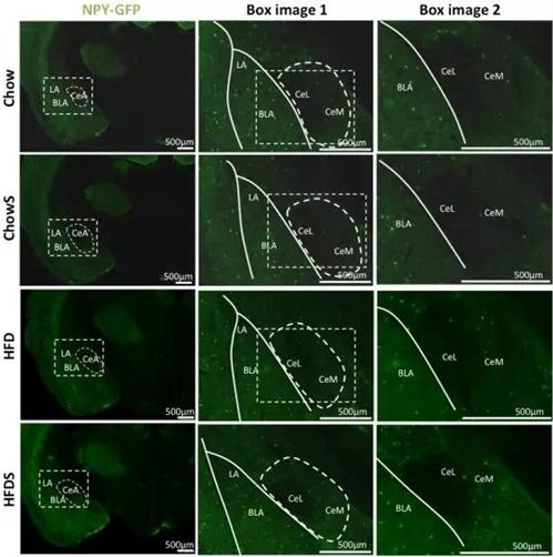 壓力+高脂飲食增加了中央杏仁核中的NPY陽性細胞數(shù)量