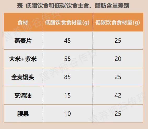 至于低脂飲食,碳水供能比例較高,需要注意多吃全谷物,少吃精米白面,同時控制添加糖。