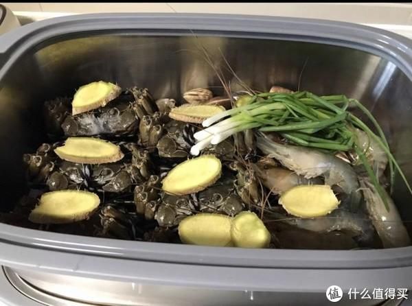 第一層放上螃蟹,蝦和貝類,下面還有一個浮力的積汁盤,不用擔(dān)心臟水被食材吸收。