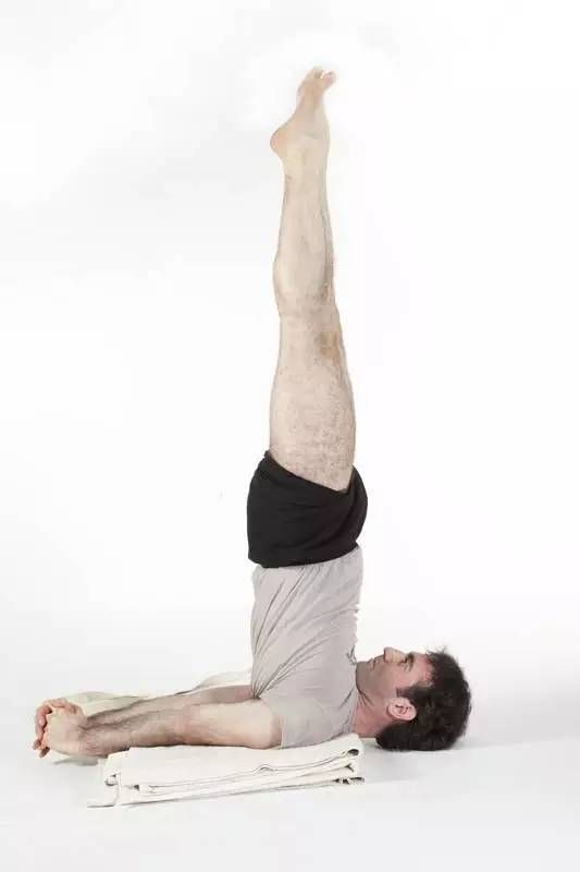 5 呼氣,雙腿向上伸直,腳趾朝上。保持3-5個(gè)呼吸。