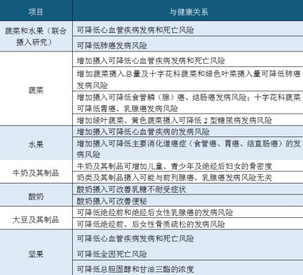 蔬菜、水果、全谷物、奶類和豆類是人類膳食的重要組成部分,富含人體所需要的維生素、礦物質(zhì)、膳食纖維和植物化學(xué)物,奶類和大豆類也是優(yōu)質(zhì)蛋白質(zhì)的重要來源。