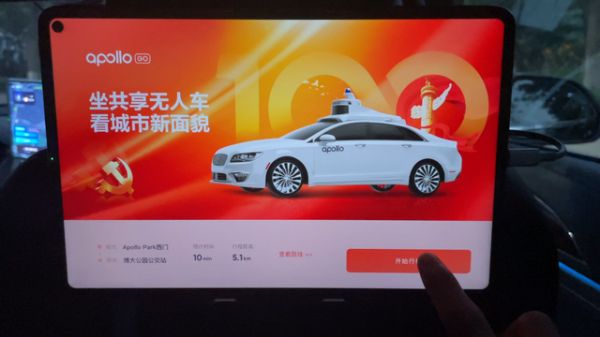 在Apollo汽車內(nèi)部,除了多出了幾塊可以方便安全員和乘客查看行車狀態(tài)的平板電腦外,和普通車輛并沒有太大區(qū)別。出于安全底線的考慮,目前每輛車內(nèi)的主駕駛位上還都設(shè)有安全員,方便在出現(xiàn)極為特殊的情況時(shí)進(jìn)行人工介入。而我們的體驗(yàn)旅程,也在點(diǎn)擊平板電腦上的按鈕后,正式開始了。