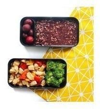 先做個粥,準備大米、糙米、黑米、燕麥米、薏米、紅豆混合在一起煮。雞肉切成大丁,用黑胡椒、鹽、生抽腌一下,彩椒切大丁,完了先把雞肉炒一下,熟了就加彩椒進去,加點調味料、鹽、蠔油、水煮一下,熟了就裝起來。西蘭花切小過熱水弄熟,用生抽、蒜蓉拌一下,櫻桃適量。