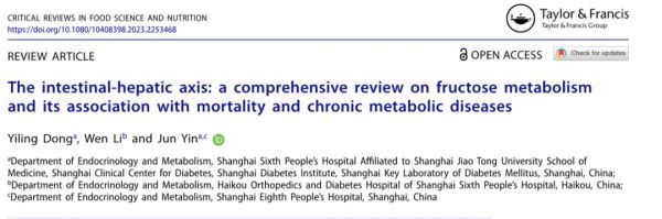 2023年9月6日,上海交通大學(xué)醫(yī)學(xué)院附屬第六人民醫(yī)院內(nèi)分泌代謝科殷峻團(tuán)隊(duì)在食品學(xué)、營(yíng)養(yǎng)學(xué)領(lǐng)域頂級(jí)期刊Critical Reviews in Food Science and Nutrition(IF: 10.2/Q1)上發(fā)表題為The intestinal-hepatic axis: a comprehensive review on fructose metabolism and its association with mortality and chronic metabolic diseases的綜述。該綜述系統(tǒng)回顧了過(guò)量攝入果糖導(dǎo)致慢性代謝疾病發(fā)病率和全因死亡率增加的臨床證據(jù),通過(guò)對(duì)比總結(jié)果糖和葡萄糖在腸道、肝臟中的代謝影響揭示了過(guò)量攝入果糖促進(jìn)代謝性疾病發(fā)展的機(jī)制,并突出了腸道在果糖代謝中的重要地位。綜述共14頁(yè),內(nèi)容詳盡,以下為部分節(jié)選概括: