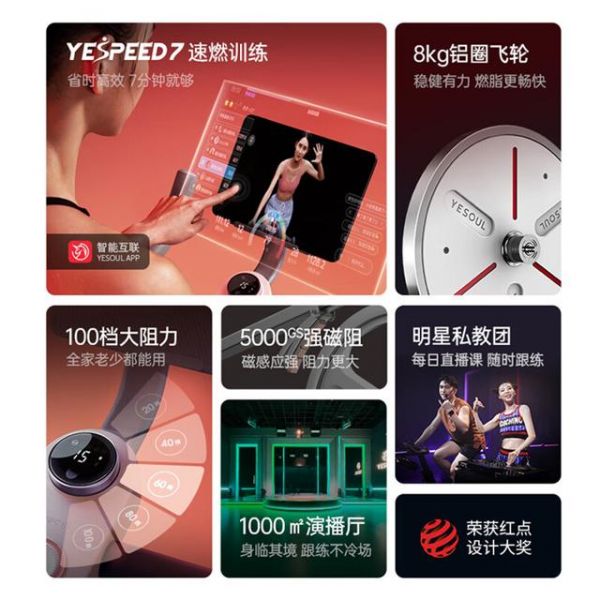 總而言之,YESOUL野小獸S1動(dòng)感單車(chē)是一款集時(shí)尚設(shè)計(jì)、穩(wěn)定性能和豐富功能于一體的家用健身器材,是您追求健康生活方式的完美伴侶。