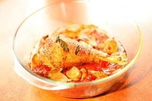 1、蕃茄一定要在底部 因?yàn)檫@樣烤的蕃茄汁水才能深入雞腿底部里面 而不影響雞腿正面雞皮烤的香脆