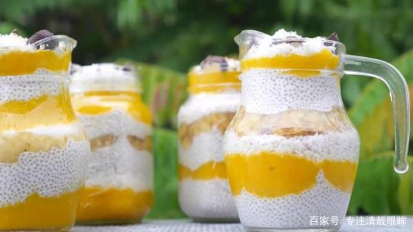 準(zhǔn)備1杯椰奶,2杯芒果丁,2湯匙奇亞籽和2湯匙希臘酸奶。首先將奇亞籽加入椰奶中,在冰箱中放置20分鐘,使奇亞籽膨脹。在等待奇亞籽脹滿(mǎn)和冷卻的同時(shí),把芒果丁和酸奶一同放入攪拌機(jī)攪拌,最后把它們混合起來(lái)。一個(gè)美味營(yíng)養(yǎng)的布丁就完成了。如果你不太喜歡希臘酸奶,也可以使用蜂蜜。
