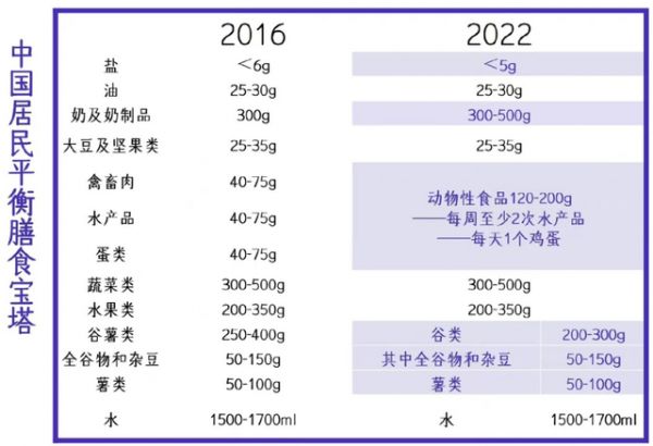 2、提高奶及奶制品的攝入量,從2016版的300克增加至300-500克。牛奶是優(yōu)質(zhì)蛋白質(zhì)、鈣等營養(yǎng)素的重要來源,對人一生的健康都有好處,要保持終生不“斷奶”。