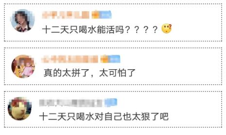 以至于很多評論都是說“十二天只喝水能活嗎”、“我(只喝水)一天感覺都要死了”……