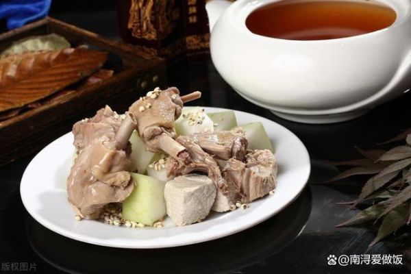 材料:老鴨:1只(約1.5-2公斤,切塊)、冬瓜:500克(去皮切塊)、薏仁:50克(提前浸泡2小時(shí))、干貝:5-6只(可選,增加鮮味)、枸杞:適量(可選,增添色澤與營(yíng)養(yǎng))、姜:3-4片、料酒:1大勺、食鹽:適量、清水:適量