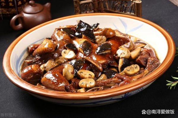 6. 加入香菇:將泡發(fā)好的香菇加入鍋中,繼續(xù)燉煮。此時(shí)可以加少許料酒去腥,增加香氣;大火燒開(kāi)后,撇去浮沫,轉(zhuǎn)小火慢燉1小時(shí),直到雞肉熟透,湯汁濃郁。