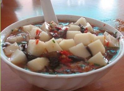 冷卻后切成小方塊拌以作料就成為酉陽特色美食,大人小孩喜愛有加。