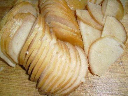 蒸好后可以統(tǒng)一放置一處,待需要時(shí)再取來加工。其主要食法有兩種:一是炒,切成3mm左右的薄片,可以只炒米豆腐,也可加入肉片一起炒,可以是鹽味,也可以是甜味;二是做蒸菜的時(shí)候用來墊碗,這種做法主要是辦酒席的時(shí)候用,主要做法是先切成菱形,放入作料,上面可以是當(dāng)?shù)氐嫩缱尤猓部梢允撬秩獾?。各種作法均很好吃。