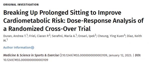 近日,由哥倫比亞大學(xué)醫(yī)學(xué)院的 Keith Diaz 博士領(lǐng)銜的團(tuán)隊(duì)在 Medicine & Science in Sports & Exercise 期刊上發(fā)表了題為 Breaking Up Prolonged Sitting to Improve Cardiometabolic Risk: Dose-Response Analysis of a Randomized Cross-Over Trial 的研究性論文,該研究評(píng)估了在久坐期間起身走動(dòng)的不同頻率和持續(xù)時(shí)間所帶來的影響,發(fā)現(xiàn)在久坐期間每 30 分鐘起身步行 5 分鐘,就可以大大抵消久坐對(duì)血壓和血糖(心血管健康的關(guān)鍵指標(biāo))帶來的不良影響