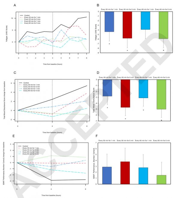 研究人員還在測試期間定期測量參與者的情緒、疲勞和認(rèn)知表現(xiàn)水平。研究發(fā)現(xiàn),除每小時(shí)步行一分鐘外,所有步行方案都顯著減輕疲勞并顯著改善了參與者的情緒,沒有一種步行方案影響認(rèn)知。