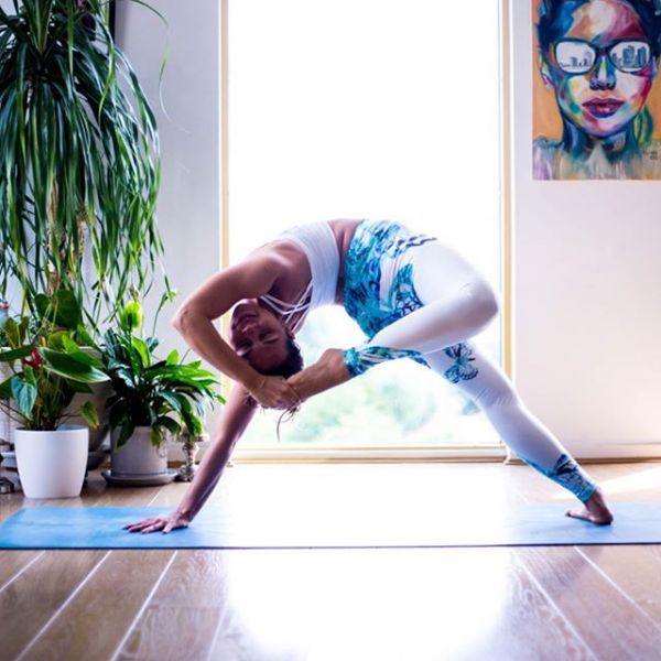 左手伸直撐地,左腳也伸直撐地,右手抬至頭頂彎曲,右腳向后伸展、彎曲,同時右手抓住右腳掌,頭部向右后側(cè)仰。整個身體呈現(xiàn)一種左側(cè)后仰,右側(cè)微抬起的姿勢,既是一種扭曲的瑜伽狀態(tài),也是一種人體藝術(shù)的文化。晚間做此體式,可以拉伸、放松白日受壓迫的脊椎。
