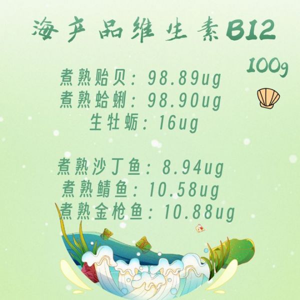 海產(chǎn)品維生素B12含量比較高,主要的有兩種:貝類和深海魚類。舉幾個例子: