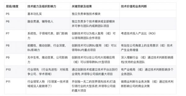 以阿里巴巴為例,以下是阿里巴巴技術(shù)序列各職級(jí)的標(biāo)準(zhǔn):