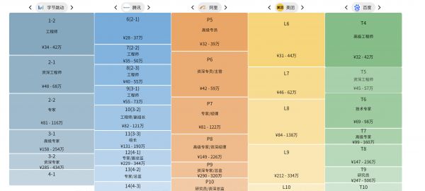 如果你在其他的互聯(lián)網(wǎng)公司,可以查看公司內(nèi)部的職級(jí)標(biāo)準(zhǔn),一些大型的 IT 公司,職級(jí)都可以和阿里的職級(jí)體系做一個(gè)對(duì)標(biāo)。