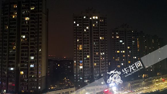 雖已是深夜,街邊小區(qū)里,仍有不少房間亮著燈。 記者 黃宇 攝