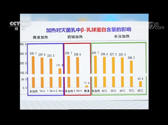 央視的節(jié)目《CCTV生活提示》中,曾經(jīng)對牛奶加熱是否會營養(yǎng)流失做過相關(guān)的測試,結(jié)果顯示:
