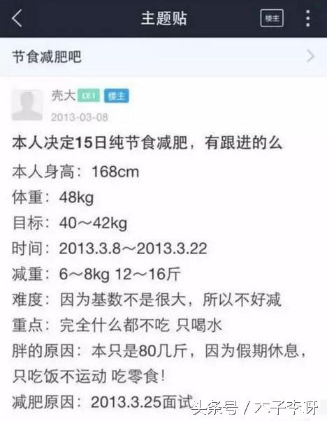 她曾經(jīng)在貼吧里發(fā),兩周內(nèi)減肥16斤,并貼出了食譜,這食譜簡(jiǎn)直逆天啊,一般人估計(jì)做不到吧,明星果然有非人的毅力,