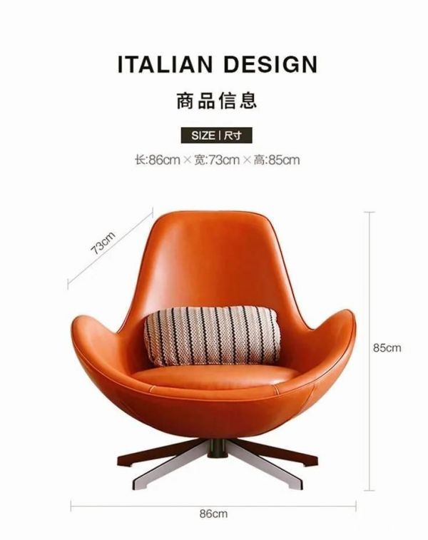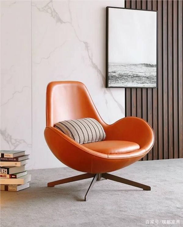 初次見到這把蛋殼休閑椅的時候,我就被它的外形深深吸引了。橙色的皮質(zhì),蛋殼般的形狀,很適合用“可愛”來評價它。好看的人和好看的產(chǎn)品都會第一時間帶給人親近感,畢竟這是個看臉的時代。
